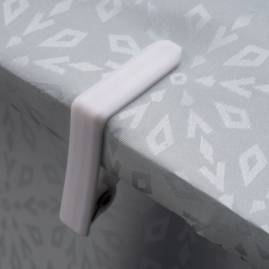 Laro 12-384 Weiße Tischtuchklammern Kunststoff, Tischdeckenklammer Weiß, Tischklammern Plastik, Tischdeckenhalter Garten, Tischtuchhalter, Tischdecken Clips für Tisch Party.