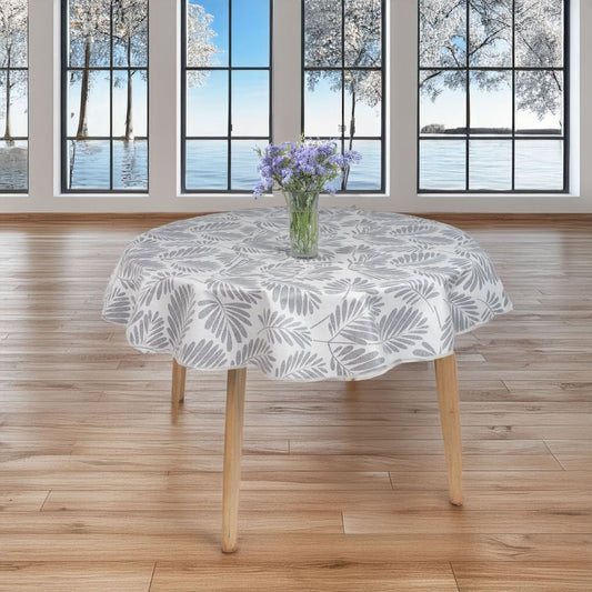 laro 140cm rund Wachstuchtischdecke mit Saum-Eingefasst Blattgeflüster Grau Weiß