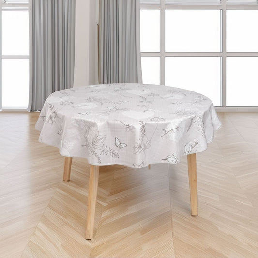 laro 140cm rund Wachstuchtischdecke mit Saum-Eingefasst Schmetterling Vogel Grau