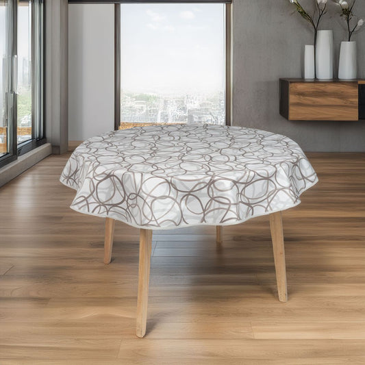 laro 140cm rund Wachstuchtischdecke mit Saum-Eingefasst Schwungkreise Grau Beige
