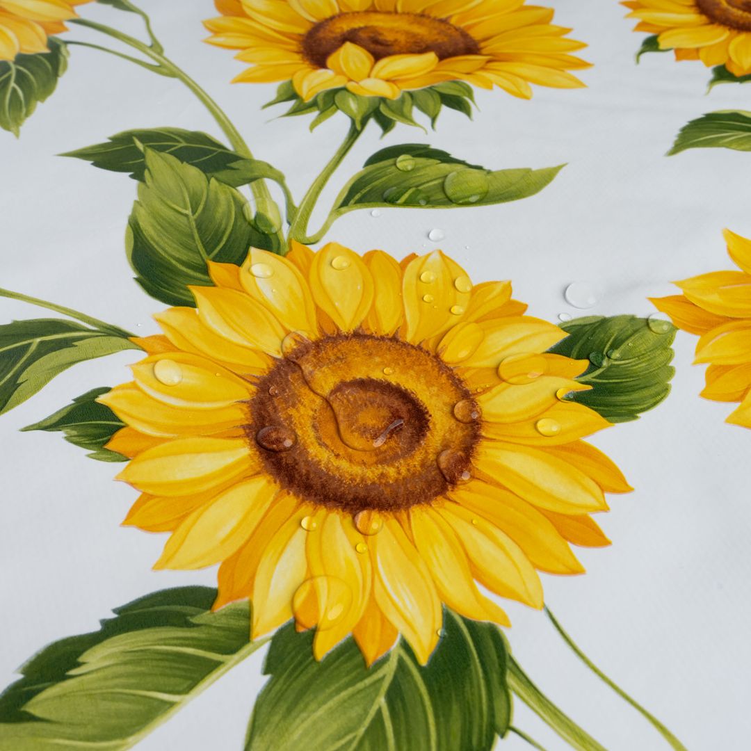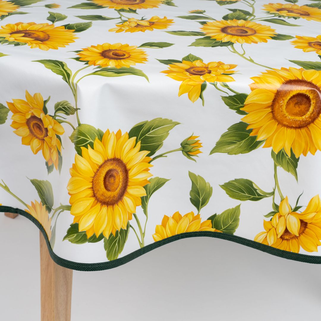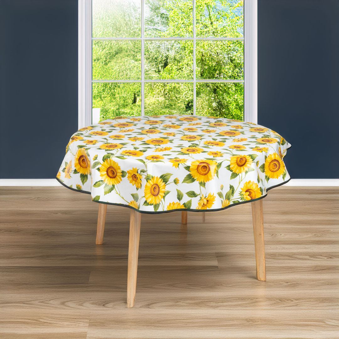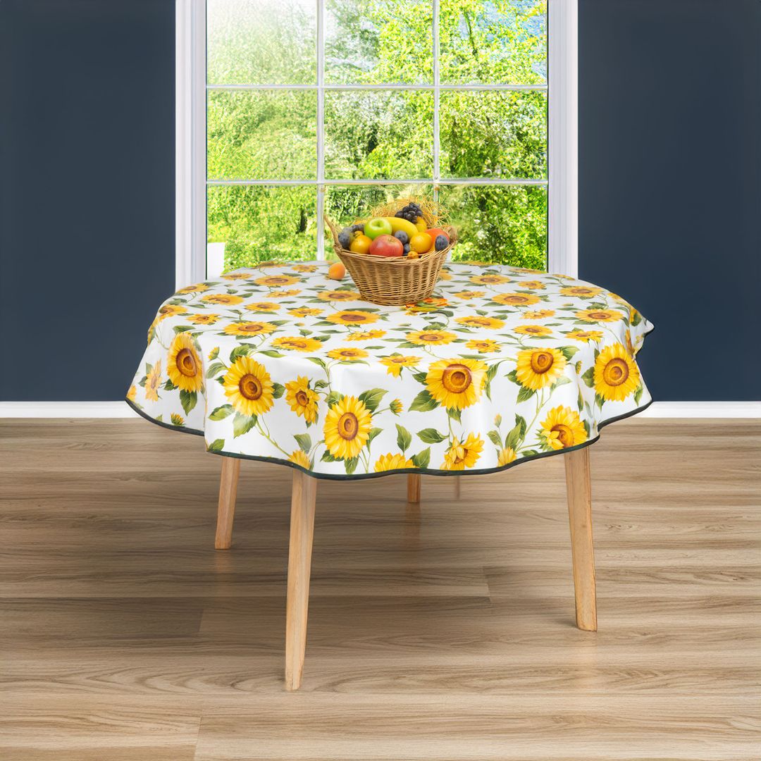 laro 140cm runde Tischdecke Saum-Eingefasst Sonnenblumen Sonnenfreude Gelb Weiß