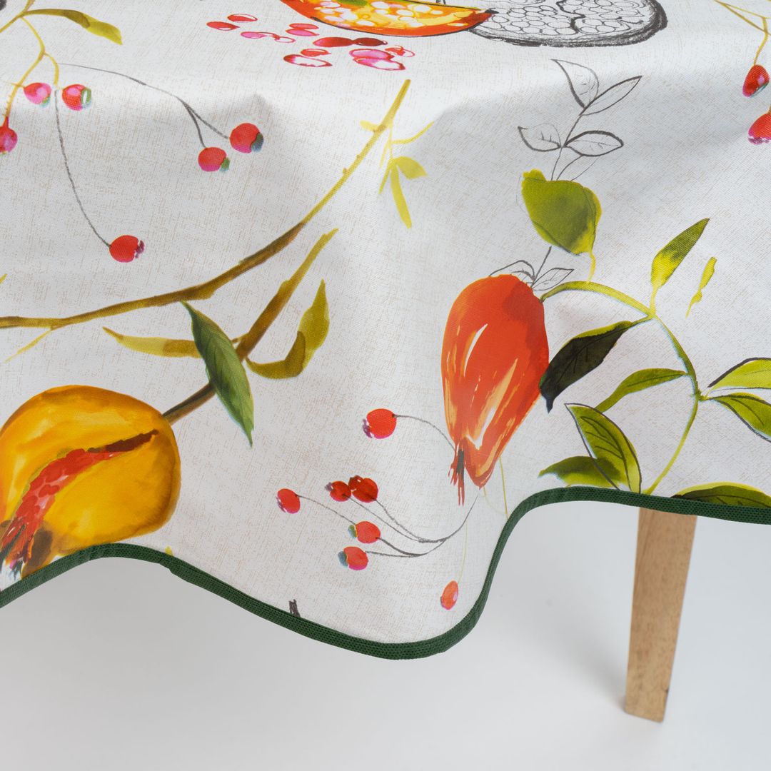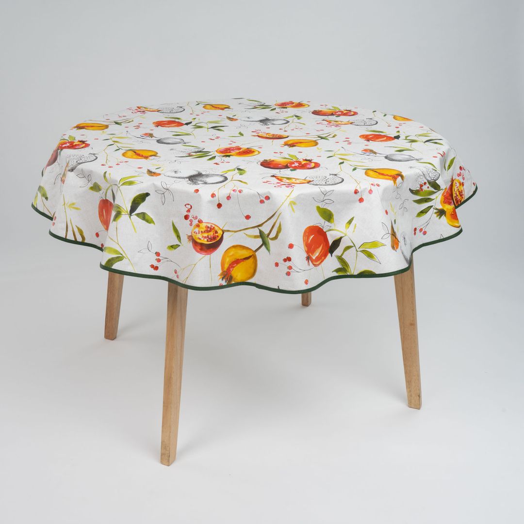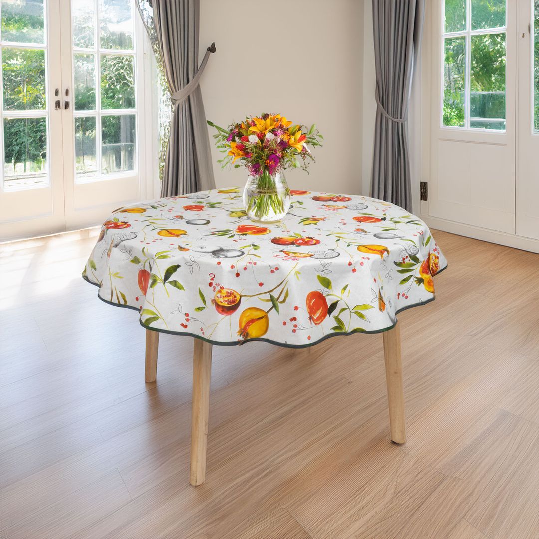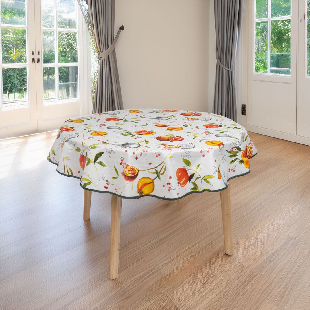 laro 140cm runde Wachstuchtischdecke Saum-Eingefasst Granatapfel Rot Orange Weiß
