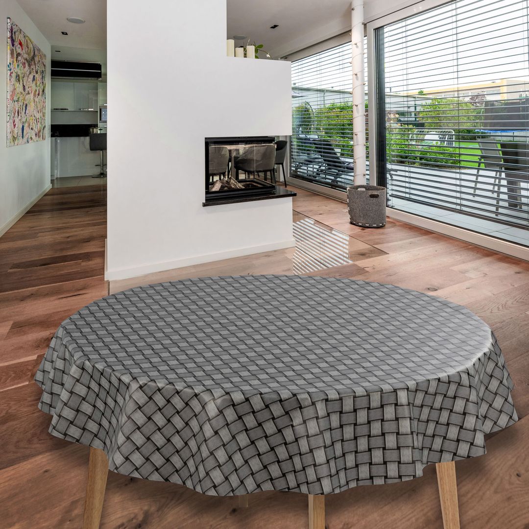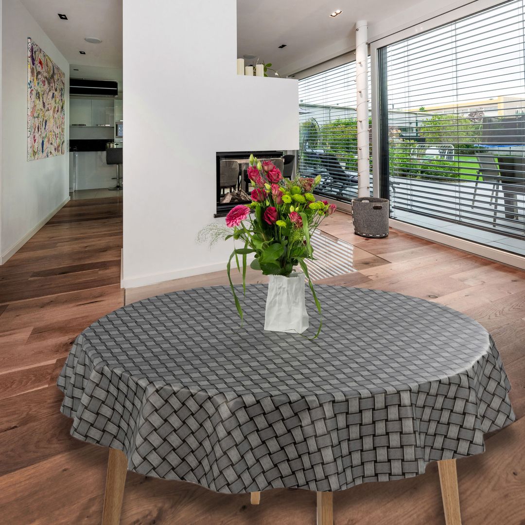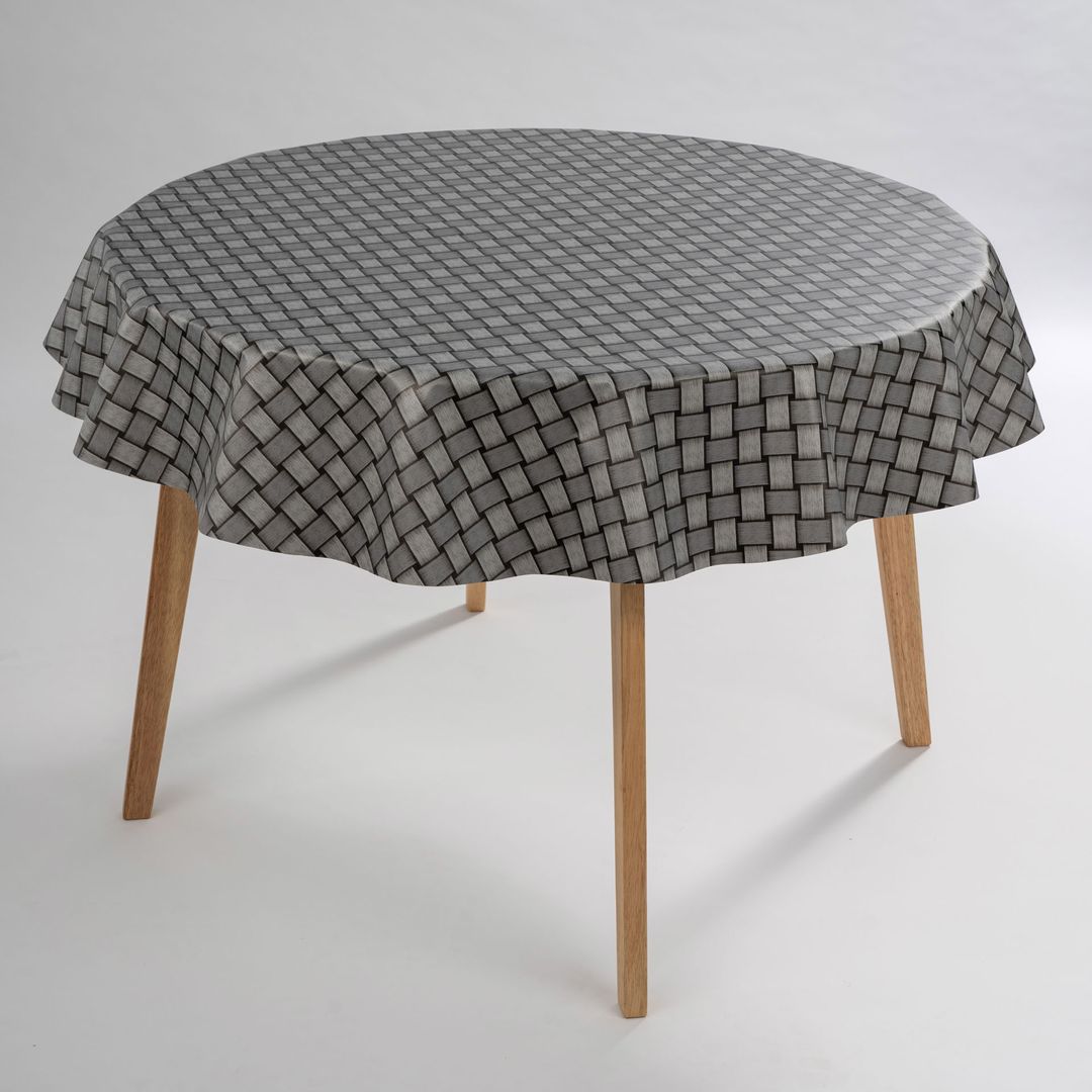 laro Rund 140 cm Wachstuchtischdecke Tischdecke Abwaschbar PVC Raster Grau Rund 140cm