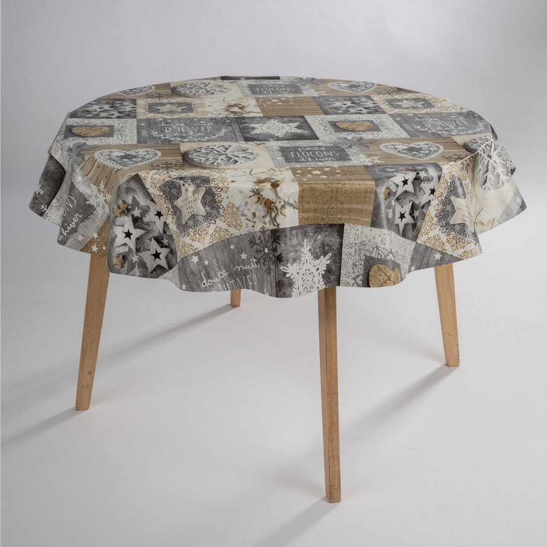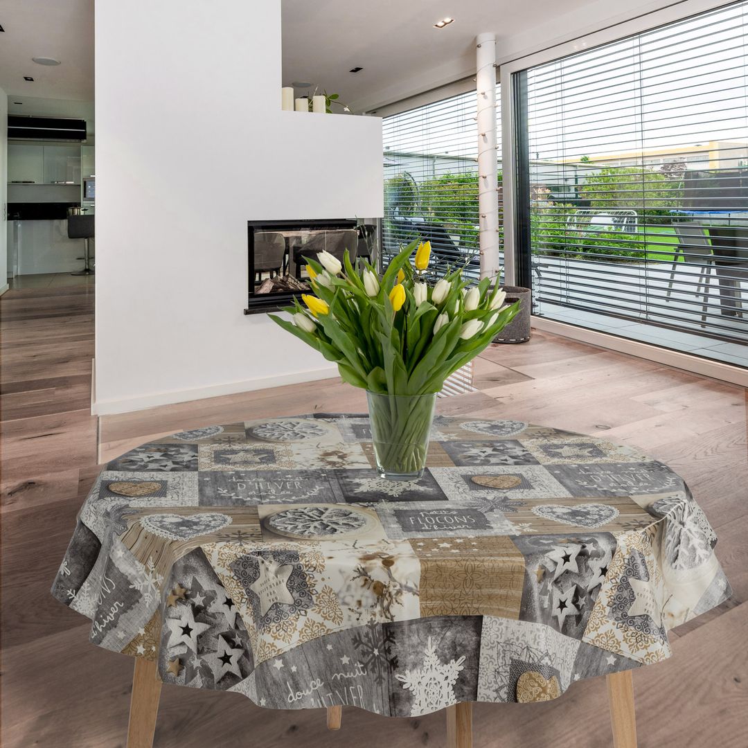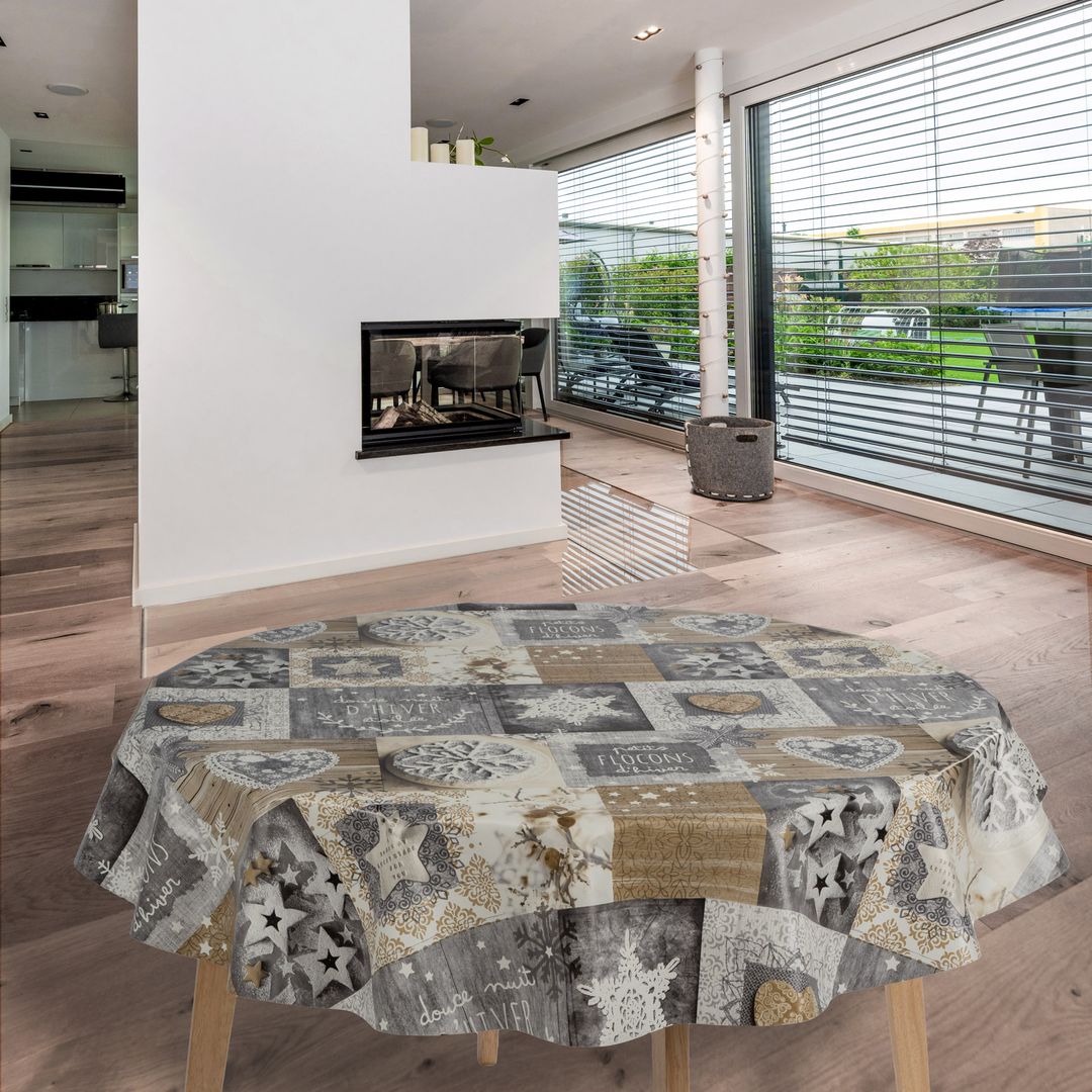 laro Rund 140 cm Wachstuchtischdecke Tischdecke Abwaschbar PVC Weihnachten Schneeflocken Spekulatius Rund 140cm