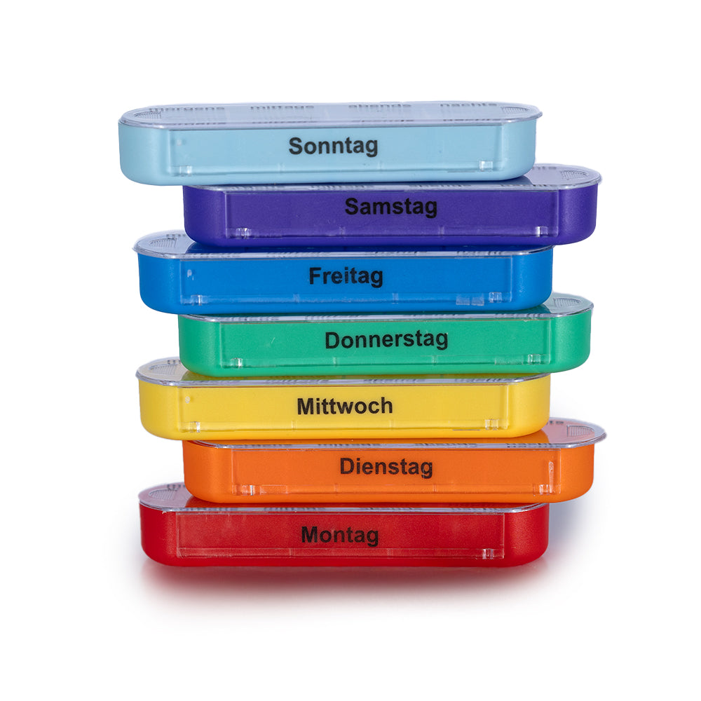 Unsere Pillendose wurde speziell für eine einfache Nutzung entwickelt. Die Fächer lassen sich mühelos öffnen und schließen, ideal für Senioren oder Menschen mit eingeschränkter Fingerfertigkeit. Die große Beschriftung erleichtert die tägliche Medikamenteneinnahme.
