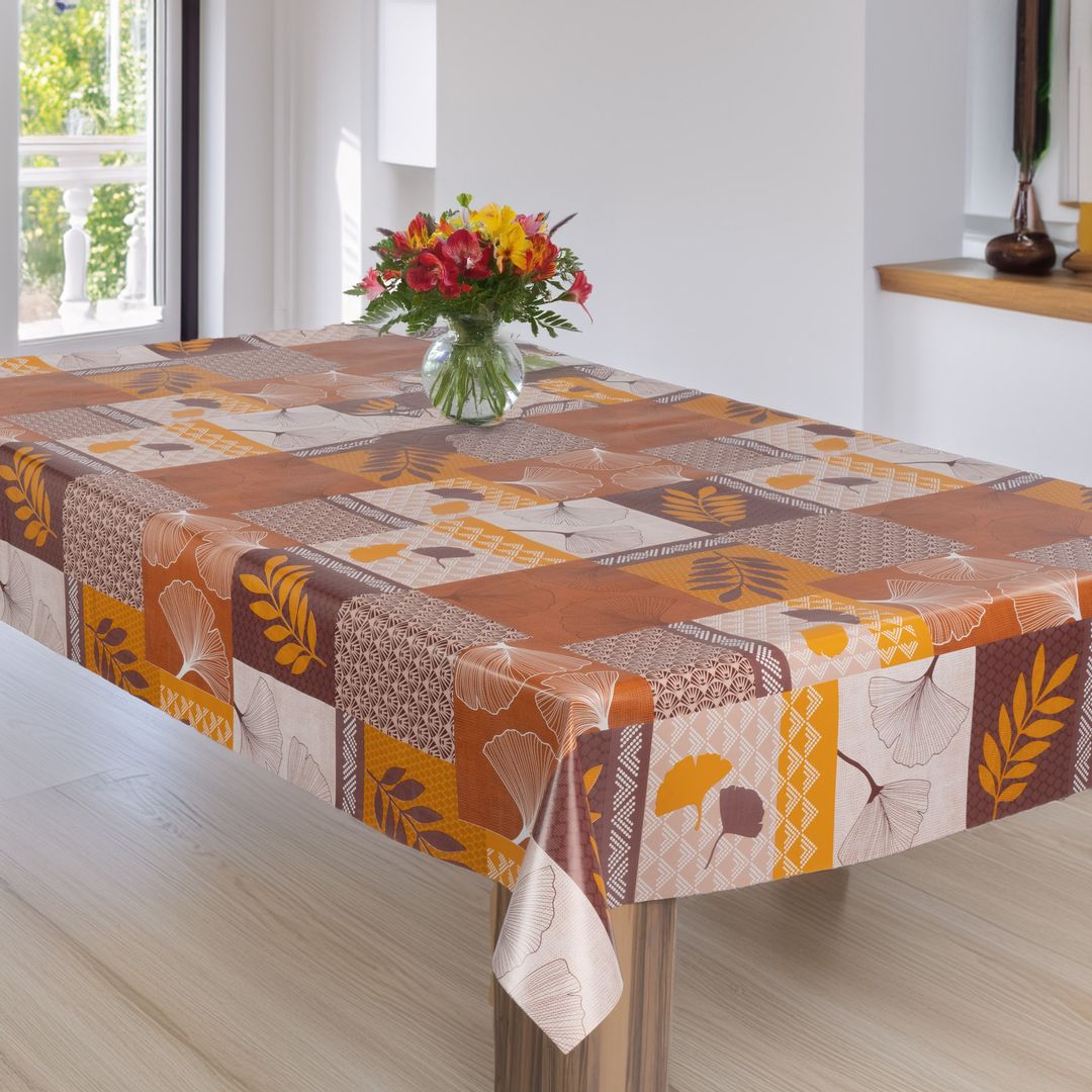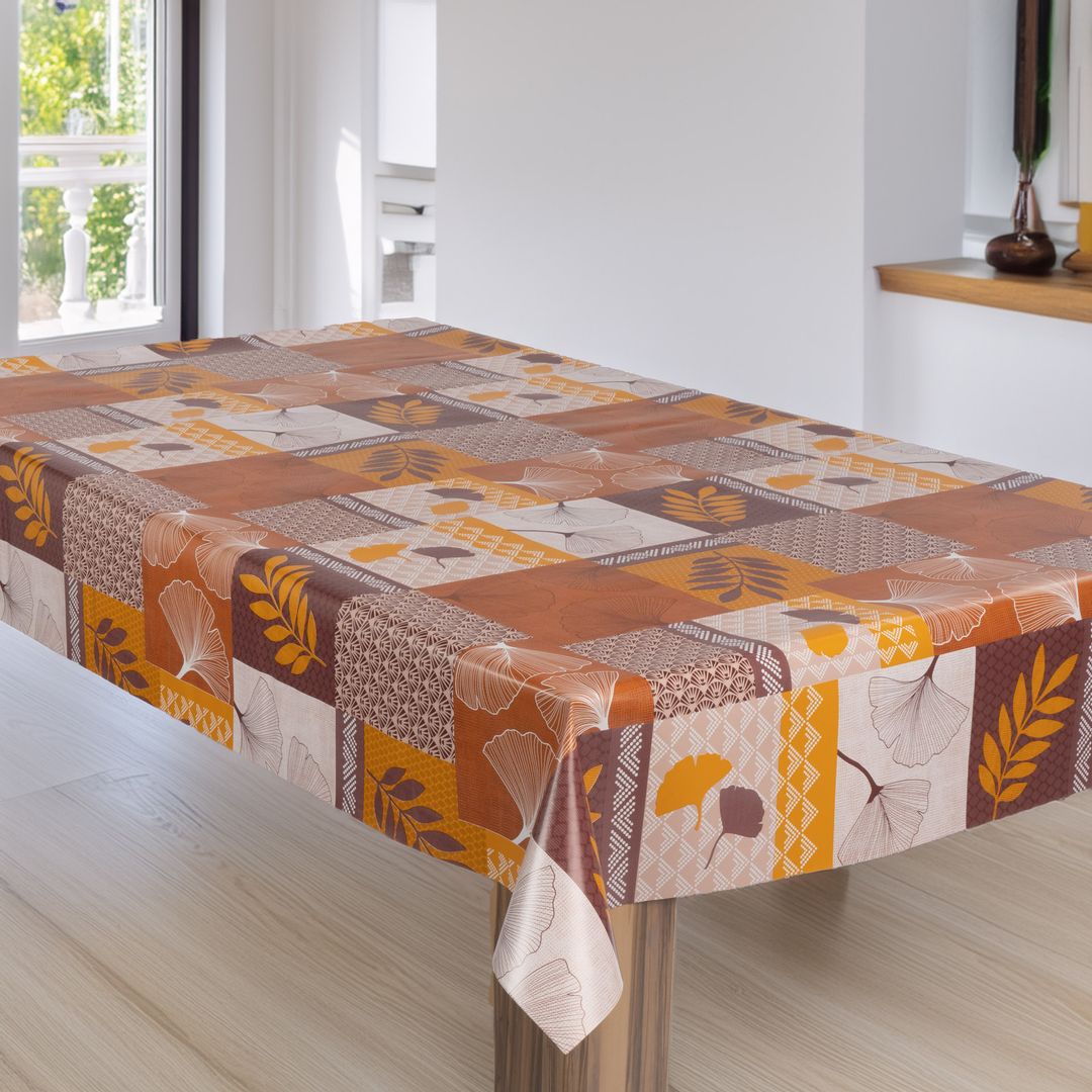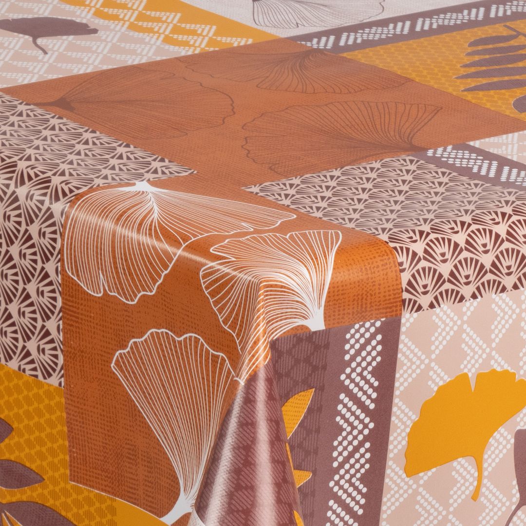 laro Wachstuch-Tischdecke Gartentischdecke Herbstfarben Retro Ginkgo
