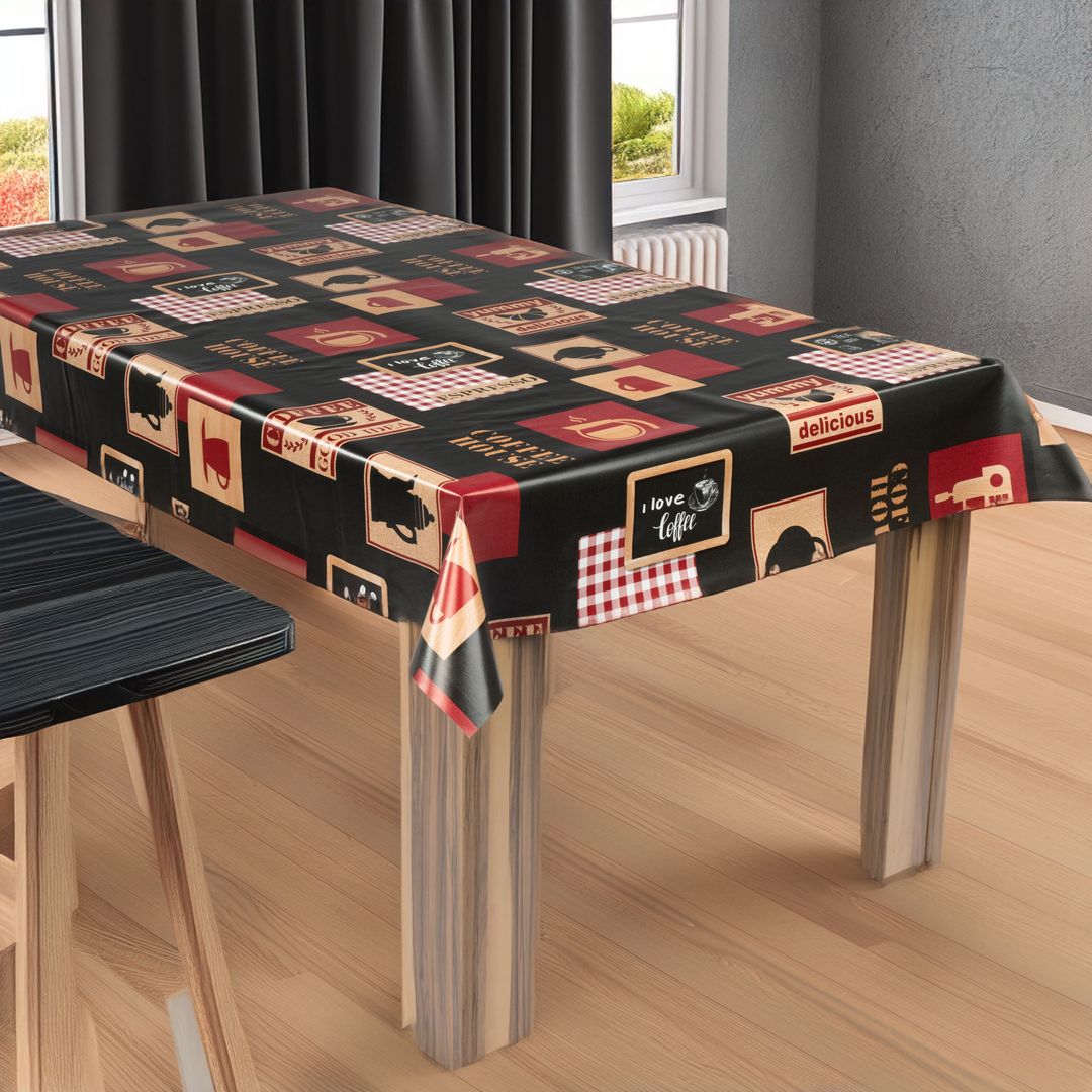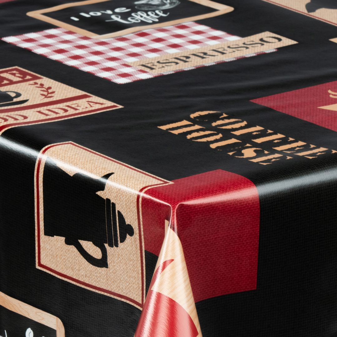 laro Wachstuch-Tischdecke Wachstischdecke Garten Kaffee Barista Schwarz Rot