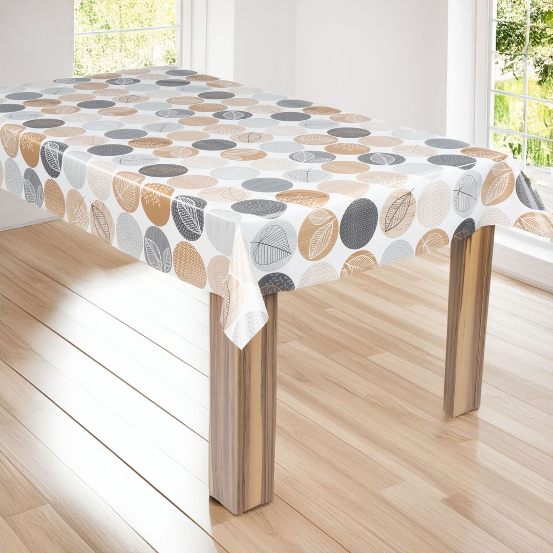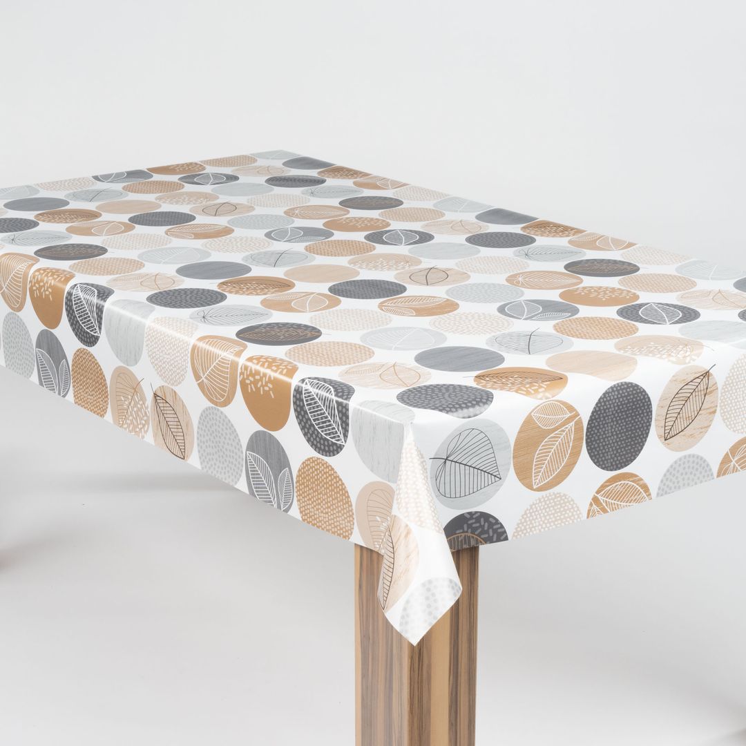 laro Wachstuch-Tischdecke Wachstischdecke Gartentischdecke Blattkreismagie Beige