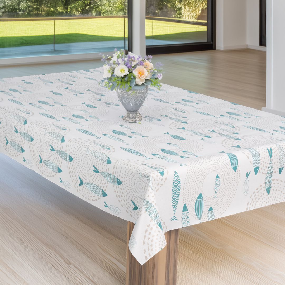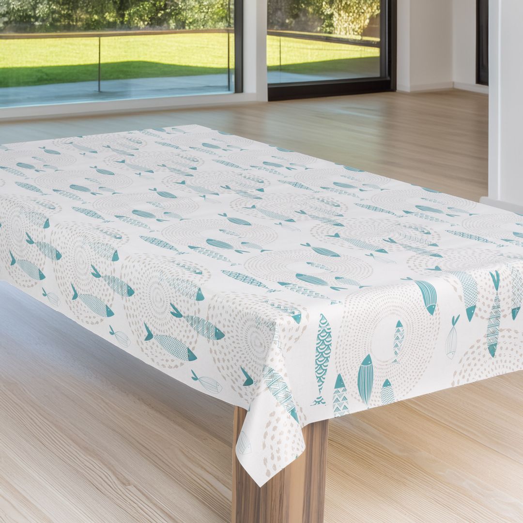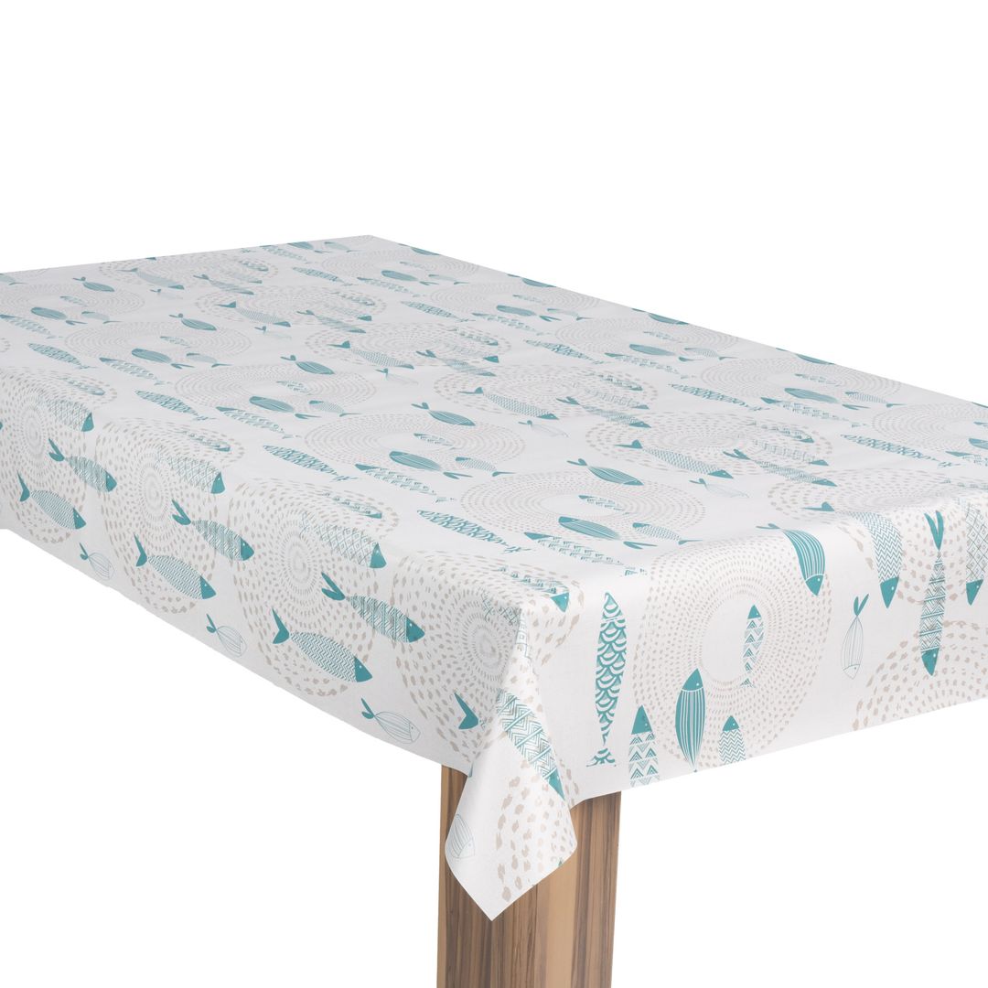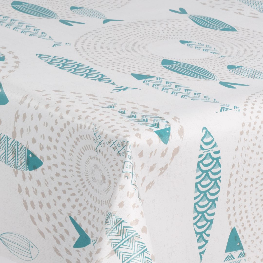 laro Wachstuch-Tischdecke Wachstischdecke Gartentischdecke FischeNordseeHellblau