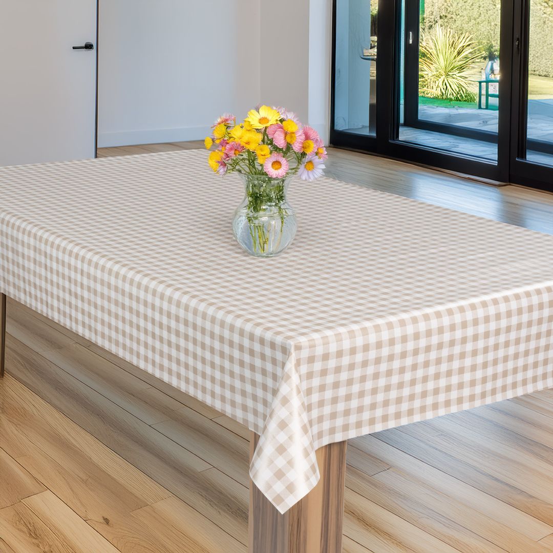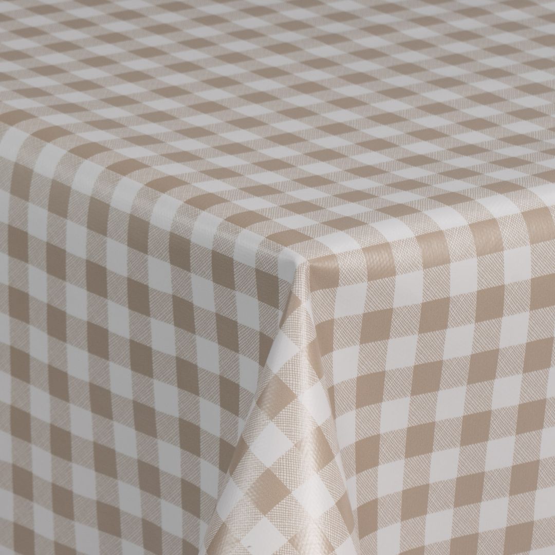 laro Wachstuch-Tischdecke Wachstischdecke Gartentischdecke Karo Kariert Beige