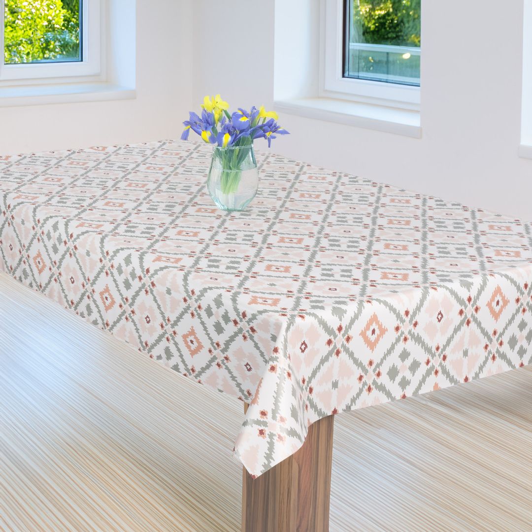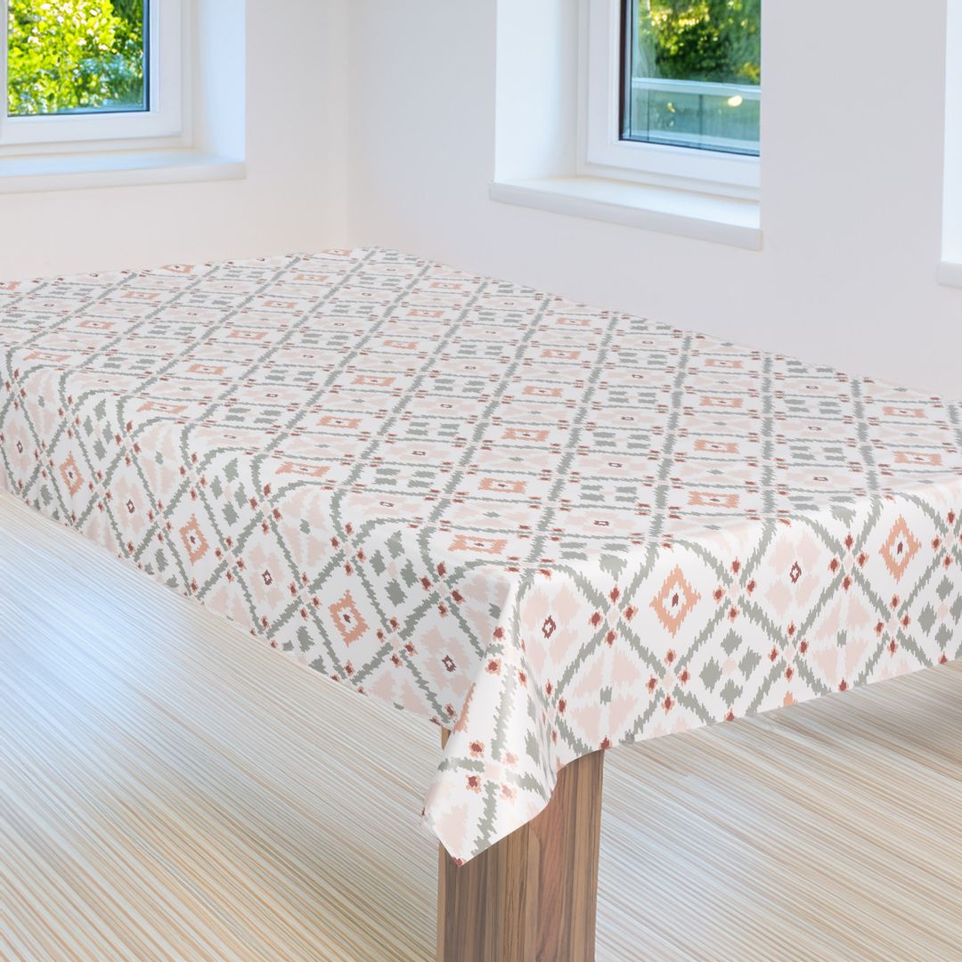 laro Wachstuch-Tischdecke Wachstischdecke Gartentischdecke Raute Pink Grau