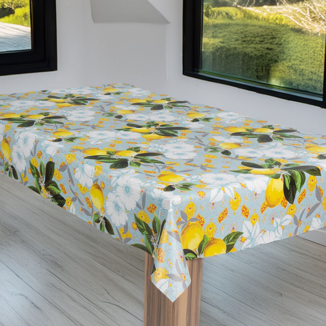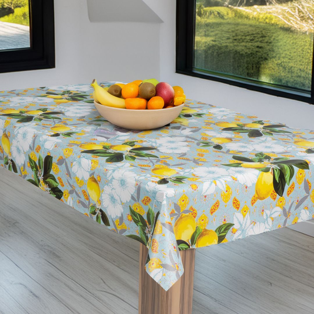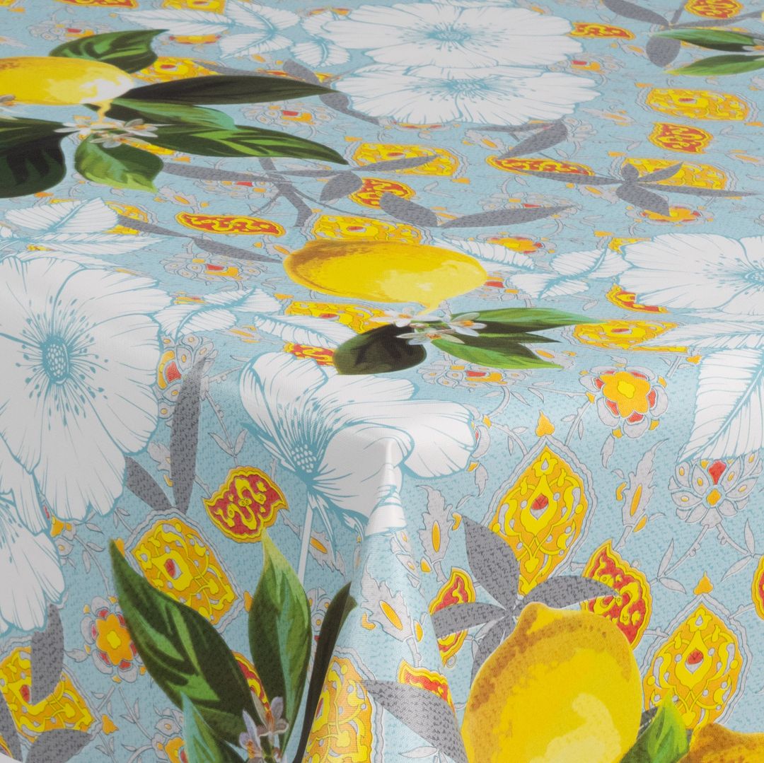 laro Wachstuch-Tischdecke Wachstischdecke Gartentischdecke Zitronen Blütenpracht