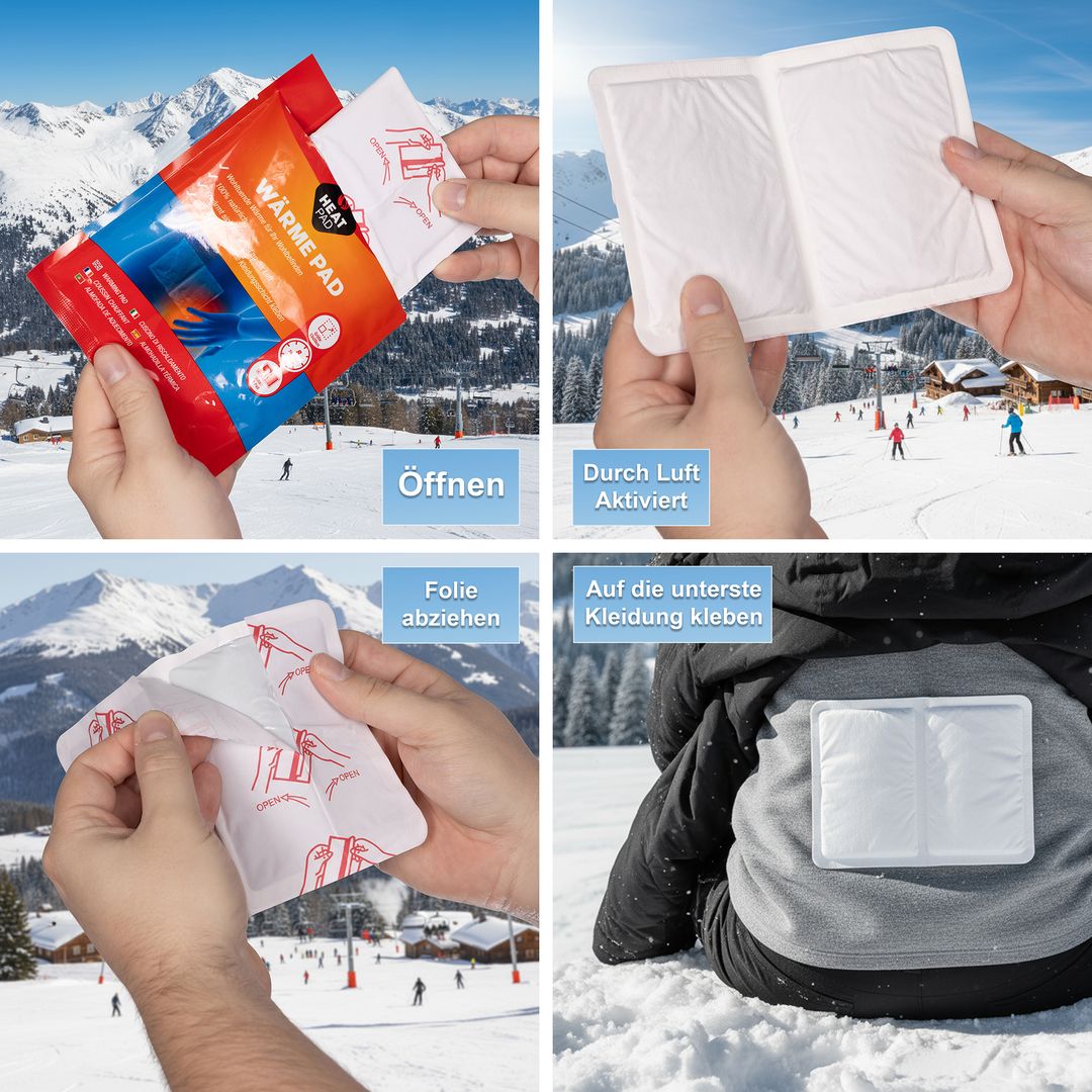 Die Wärmepflaster aktivieren sich automatisch beim Kontakt mit Luft und entfalten innerhalb weniger Minuten eine angenehme, gleichmäßige Wärme. Kein Strom, keine Mikrowelle, kein Aufwand – einfach anwenden, entspannen und die wohltuende Wirkung genießen. Ideal für den flexiblen Einsatz im Alltag, unterwegs oder zu Hause.