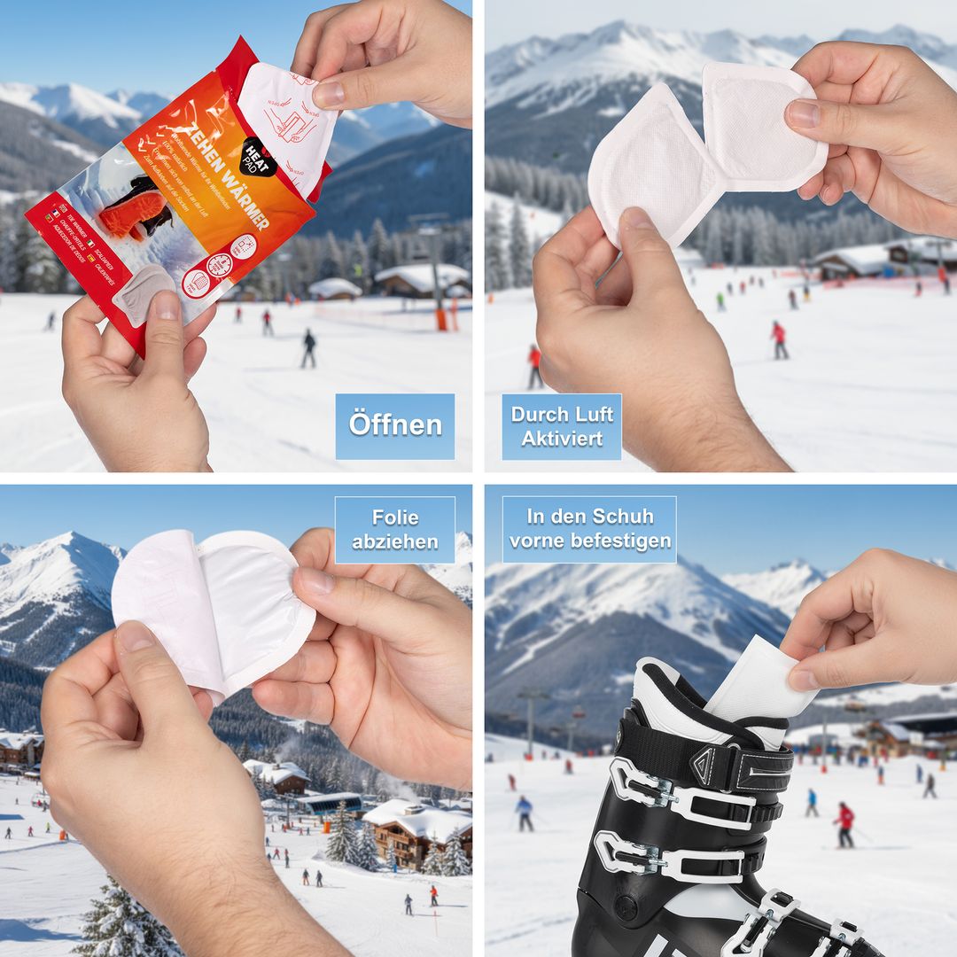 Einfach die Verpackung öffnen, den Zehenwärmer in den Schuh legen und wenige Minuten warten – schon entfaltet sich angenehme Tiefenwärme. Kein Aufladen, keine Mikrowelle, kein Aufwand. Perfekt für unterwegs, Reisen oder den täglichen Gebrauch in der kalten Jahreszeit.