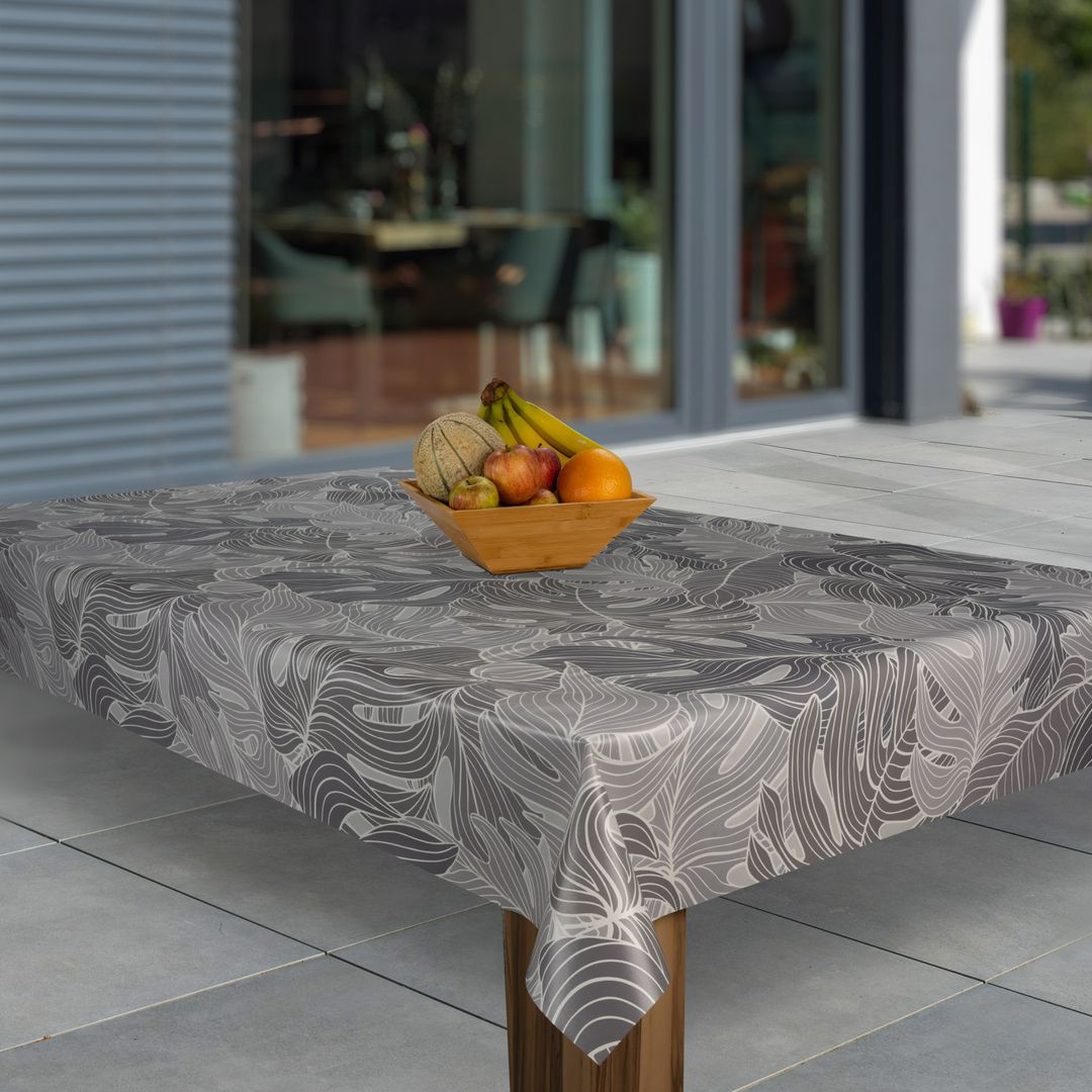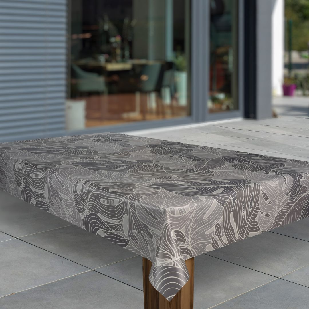 Wachstuch-Tischdecken Blätter Wellen Grau Weiß rechteckig