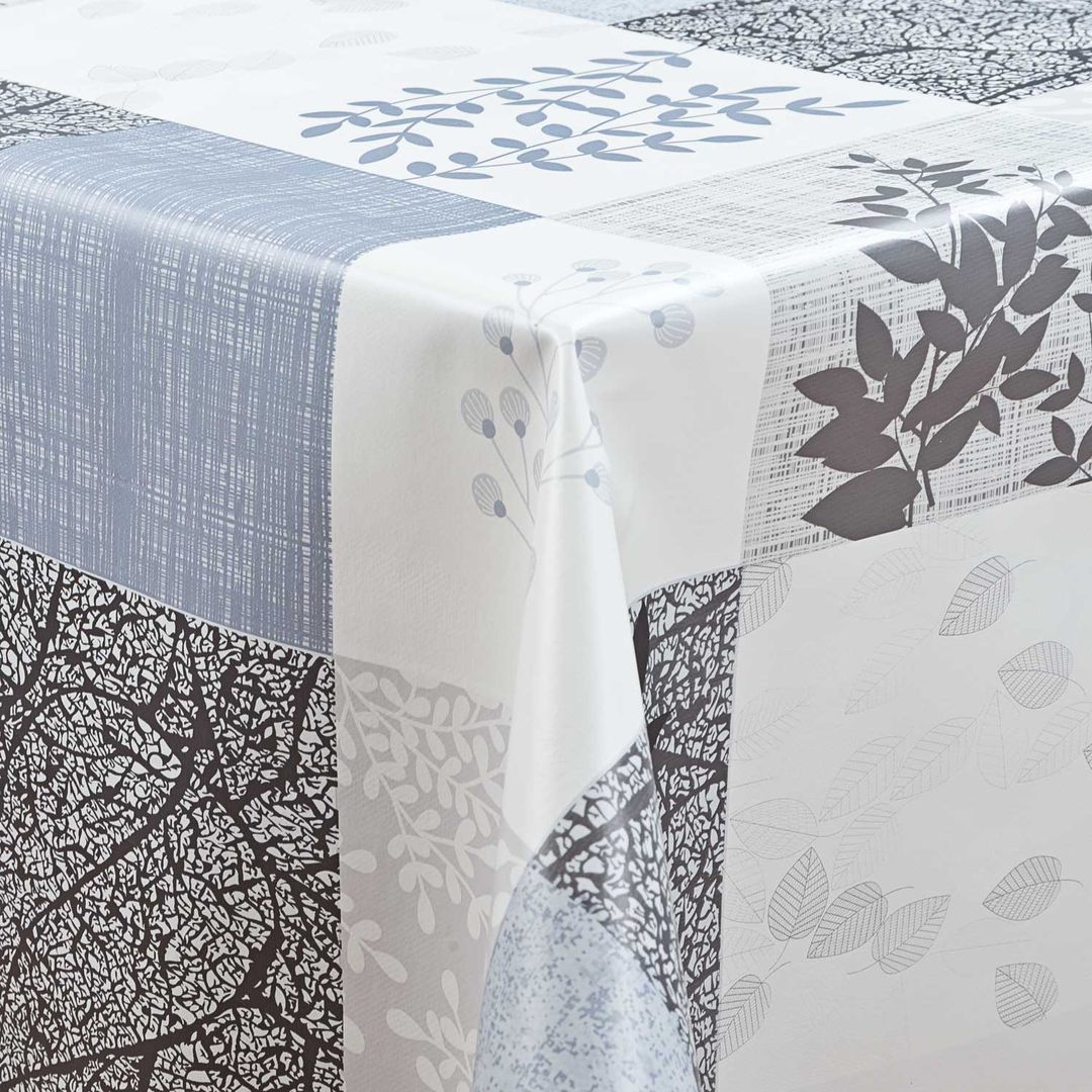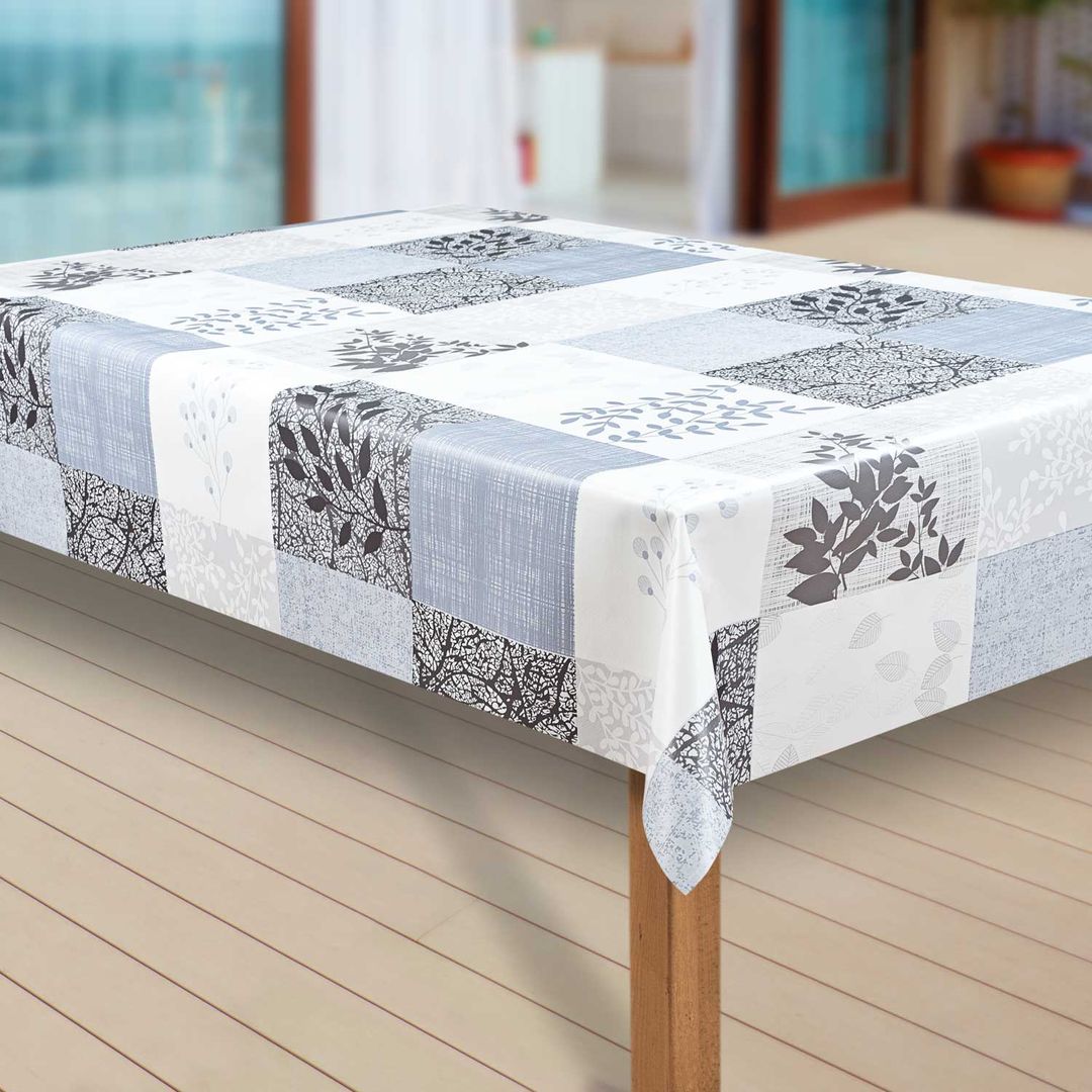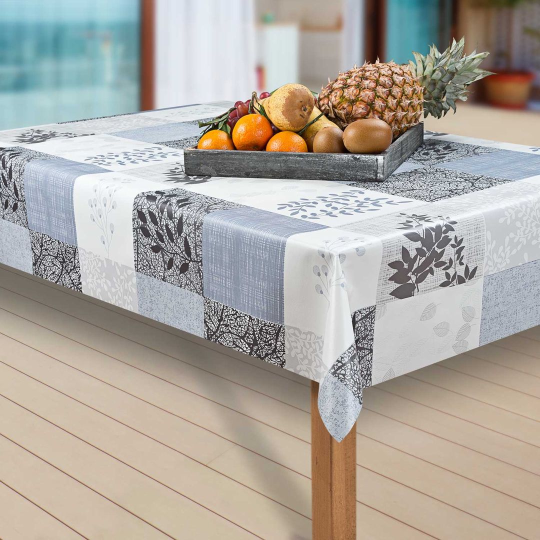 Wachstuch-Tischdecken Blumen Grau. Weiß. Schwarz rechteckig