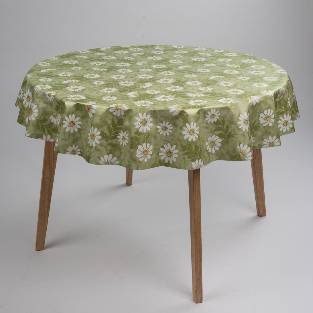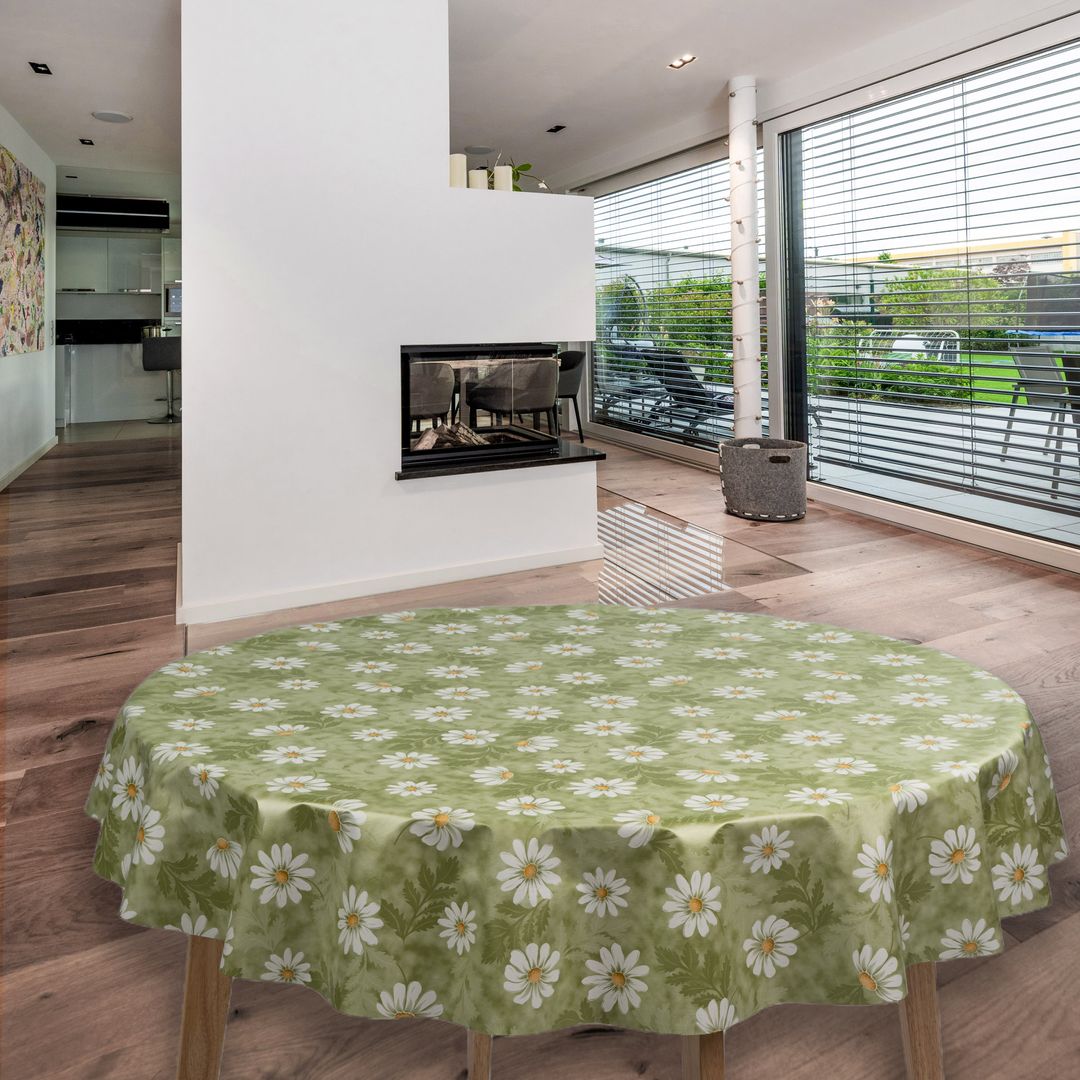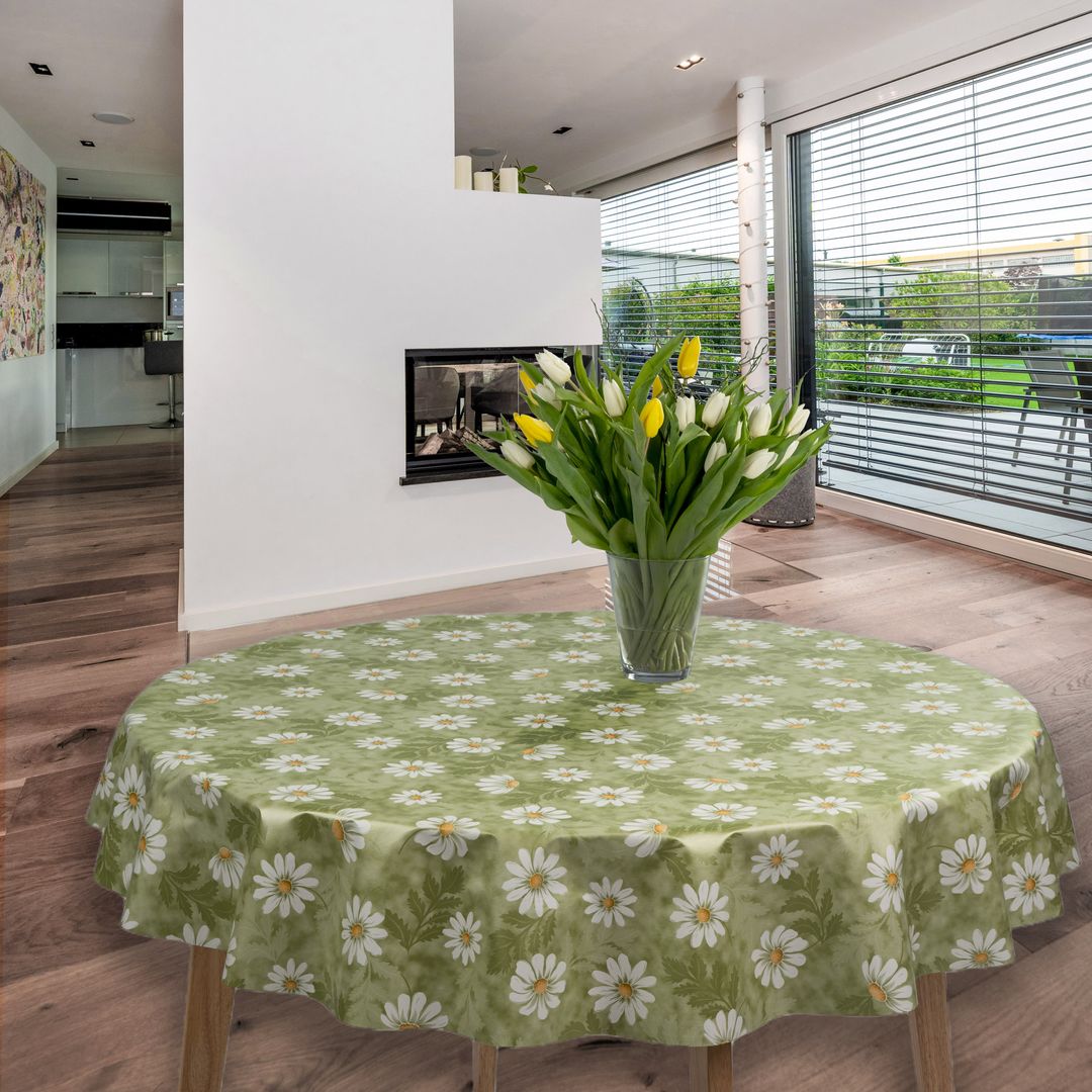 Wachstuch-Tischdecken Blumen Kamille Grün Rund 140cm
