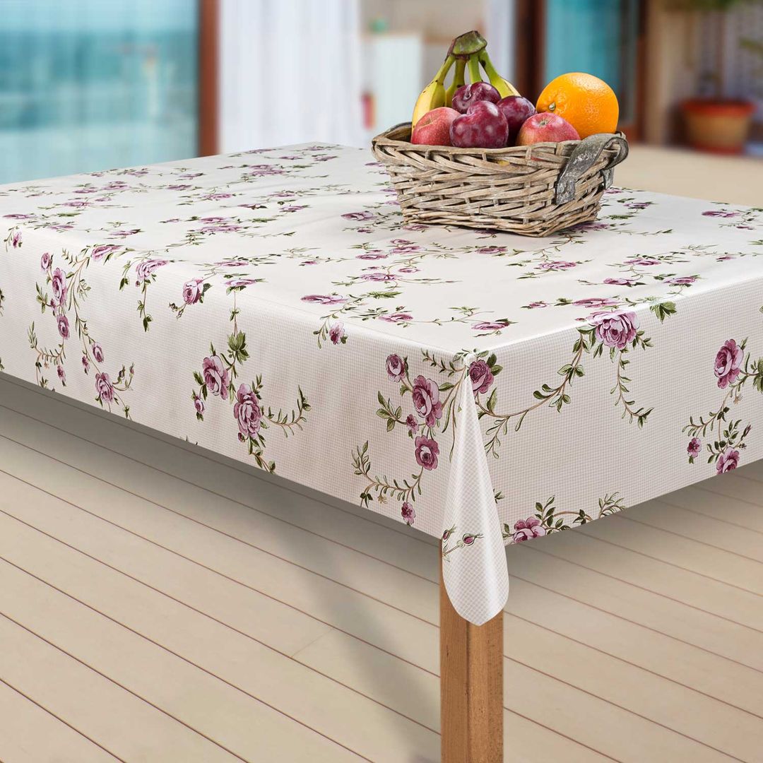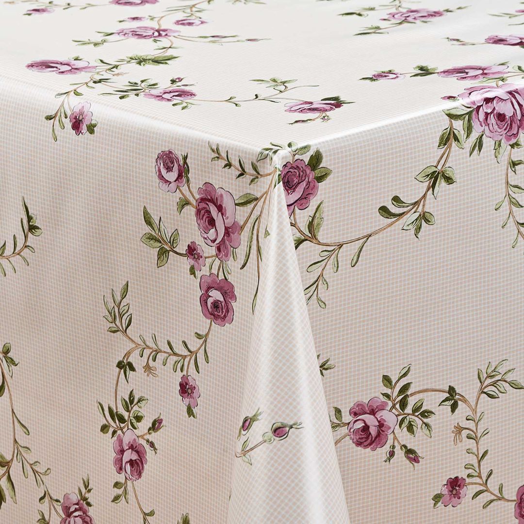 Wachstuch-Tischdecken Blumen Rose Grün. Weiß rechteckig