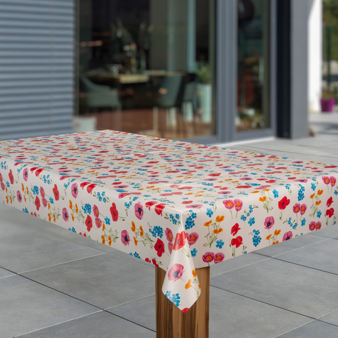 Wachstuch-Tischdecken Blumen rot blau weiß rechteckig