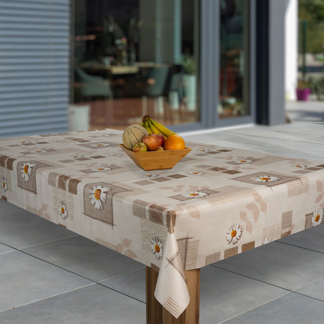 Wachstuch-Tischdecken Margerite Braun Beige rechteckig