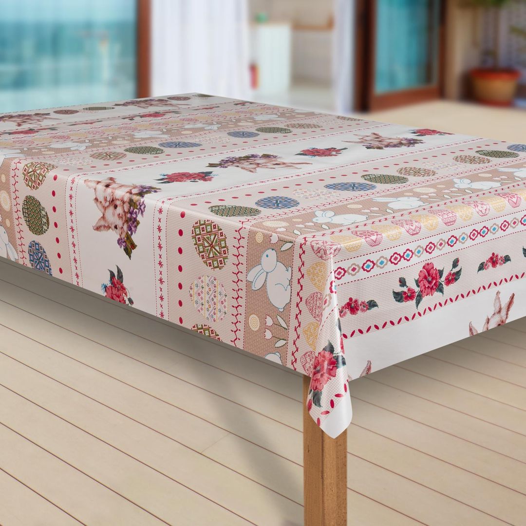 Wachstuch-Tischdecken Ostern Hase Eier Blumen Beige rechteckig