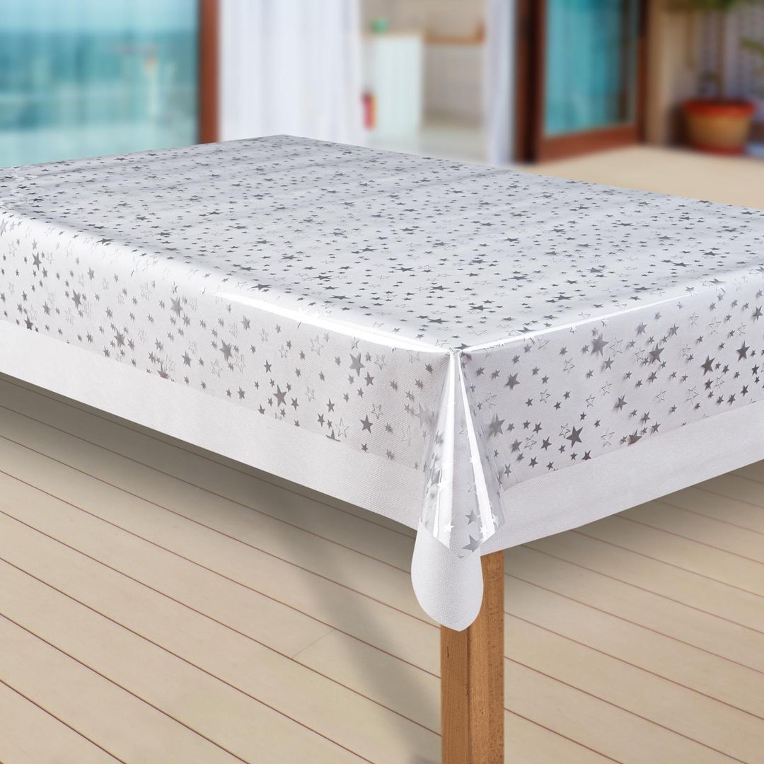 Wachstuch-Tischdecken Transparent Sterne silber rechteckig